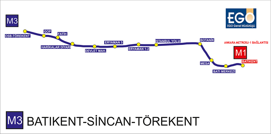 The building and civil construction work started on 02.19.2001 between Batıkent-Sincan/Törekent. Designed as 15360 meters line and 11 stations. This line is currently being operated by a continuation of the Kızılay-Batıkent Metro. Also Batıkent-Sincan Metro line, extends through the Kızılay-Batıkent Metro Line, construction and ongoing work with Kızılay-Çayyolu Metro will provide access to uninterrupted until Çayyolu.