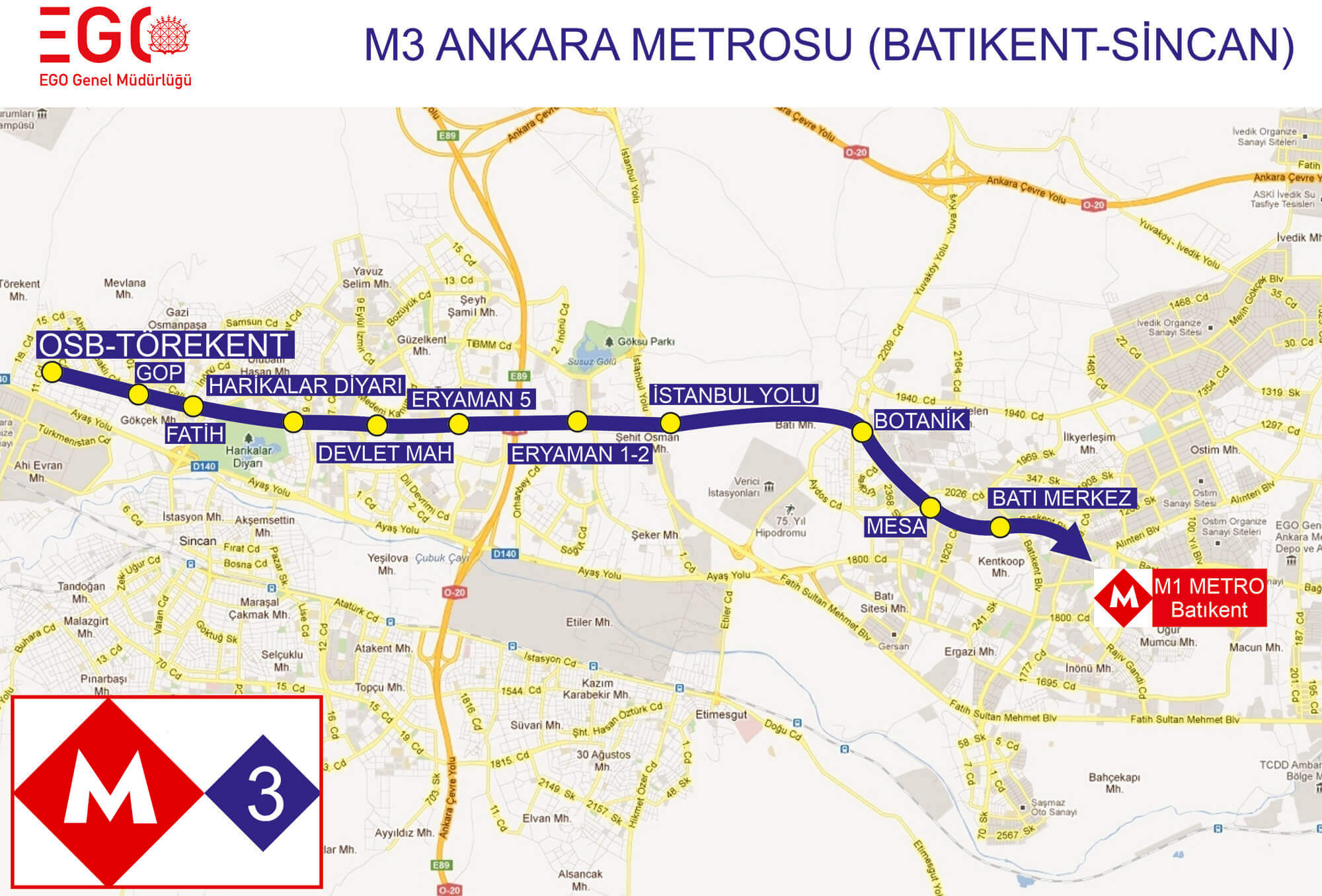 Batıkent - Sincan / Törekent arasında 15.630 metre hat ve 11 istasyon olarak projelendirilen hattın bina ve inşaat yapım çalışmalarına 19.02.2001 tarihinde başlanmıştır. Bu hat; İşletme halinde olan Kızılay-Batıkent Metrosunun devamı niteliğindedir. Ayrıca Batıkent - Sincan Metro hattı, Kızılay – Batıkent Metro Hattı üzerinden devam ederek, yapım çalışmaları devam eden Kızılay - Çayyolu Metrosu ile Çayyoluna kadar kesintisiz ulaşım imkanı sunacaktır.