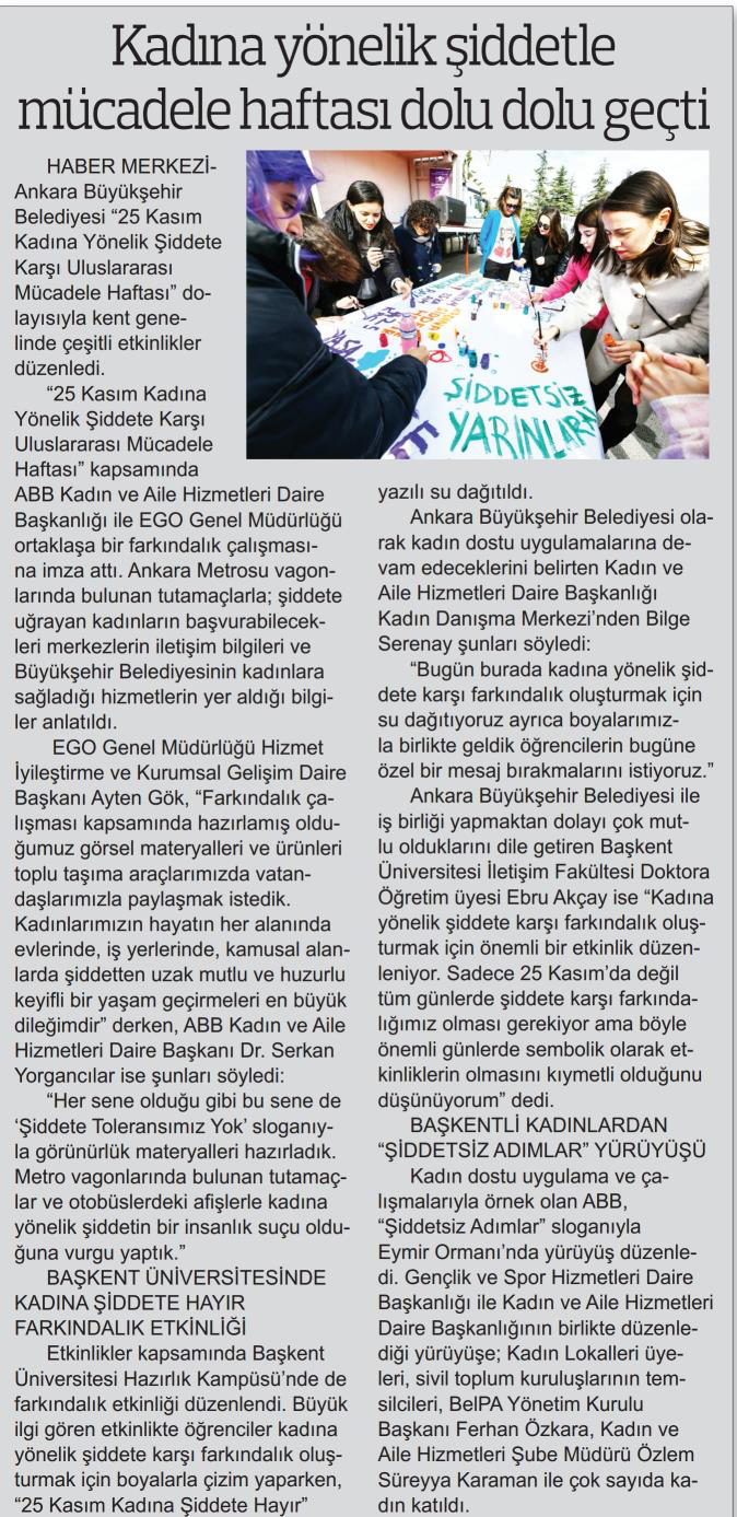 Başkent Gazetesi / 26.11.2022 Kadına yönelik şiddetle mücadele haftası dolu dolu geçti