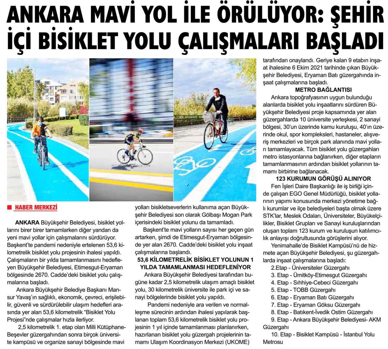 Başkent Gazetesi / 26.10.2021 Başkent mavi yol ile örülüyor