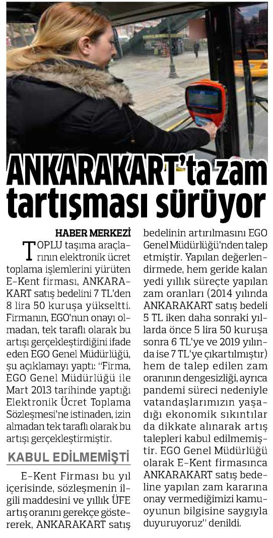 Milliyet Ankara / 12.11.2020 Ankarakart yaygınlaşıyor