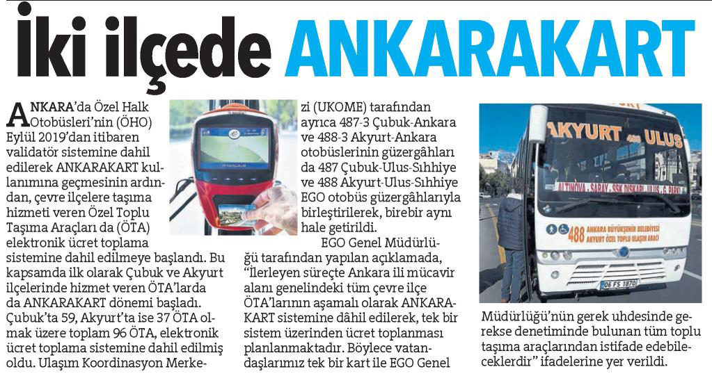 Sonsöz / 12.11.2020 Çubuk ve Akyurt’ta hizmet veren ÖTA’larda Ankarakart dönemi