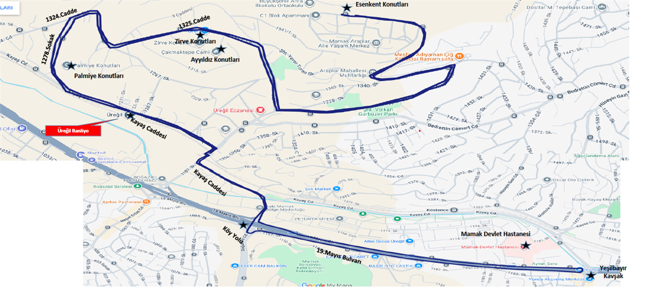 366 Araplar Esenkent Konutları Üreğil Banliyo Tren İstasyonu Hattı güzergahı yeniden düzenlenmiştir