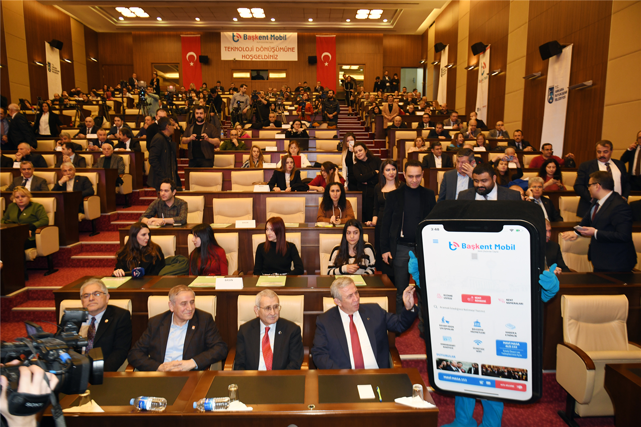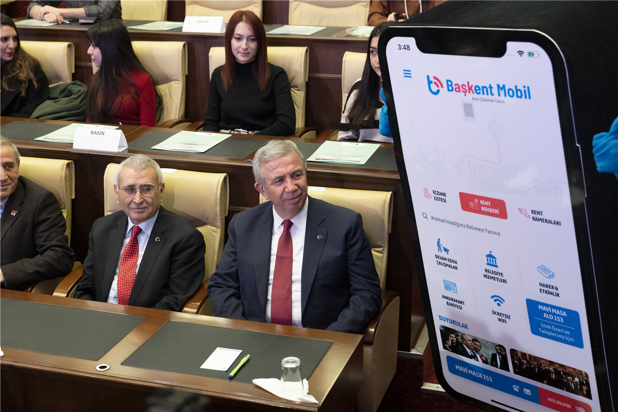 Ankara Büyükşehir Belediye Başkanı Mansur Yavaş, Türkiye’nin ilk mobil Akıllı Belediye uygulaması “Başkent Mobil”i kamuoyuna tanıttı. Yazılımın büyük bir bölümünün Belediyede görevli yazılımcılar tarafından hazırlandığını belirten Başkan Yavaş, Başkent Mobil’in dünyanın sayılı uygulamaları arasına gireceğini söyledi. Acil bildir butonundan Başkent153’e (Yeni Mavi Masa), nöbetçi eczanelerden devam eden çalışmalara, trafik durumundan ASKİ online işlemlere, Kültür Ankara’dan otobüs nerede uygulamalarıyla birçok belediye hizmeti bundan sonra Başkentlilerin hayatını kolaylaştıracak.