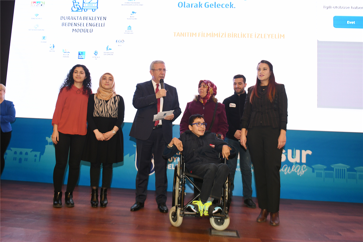 Engelsiz Ulaşım Projesi kapsamında ‘Geleceği Yazan Kadınlar Yarışması’nda ödül kazanan uygulamayı da Başkent Mobil ile birlikte hayata geçirdiklerini ifade eden Başkan Yavaş, projede derece alan Gamze Hatice Bilen, Hazal Çelik, Derya Uzmay Okutan ve filmde rol alan Necati İşik’i de tebrik etti.