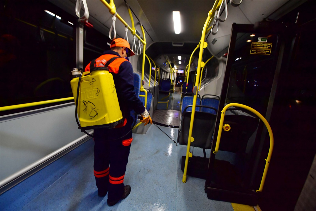 Halk sağlığını tehdit etmeyen Dünya Sağlık Örgütü ve Sağlık Bakanlığı onaylı dezenfektan ürünlerini kullandıklarını belirten Sağlık İşleri Daire Başkanı Seyfettin Aslan, özellikle raylı sistemler ile otobüslerde bakteri ve virüslerle mücadelede yeni yöntemleri kullanmaya başladıklarını açıkladı: