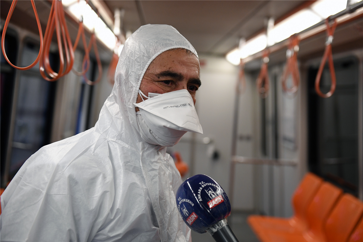 Ankara Büyükşehir Belediyesi, koronavirüsle mücadele kapsamında Metro ve ANKARAY'da alınan hijyen tedbirlerini maksimum düzeye çıkardı. Bundan sonra Metro ve ANKARAY vagonları her seferden sonra ASKİ tarafından üretilen özel dezenfektan ürünlerle temizlenecek.