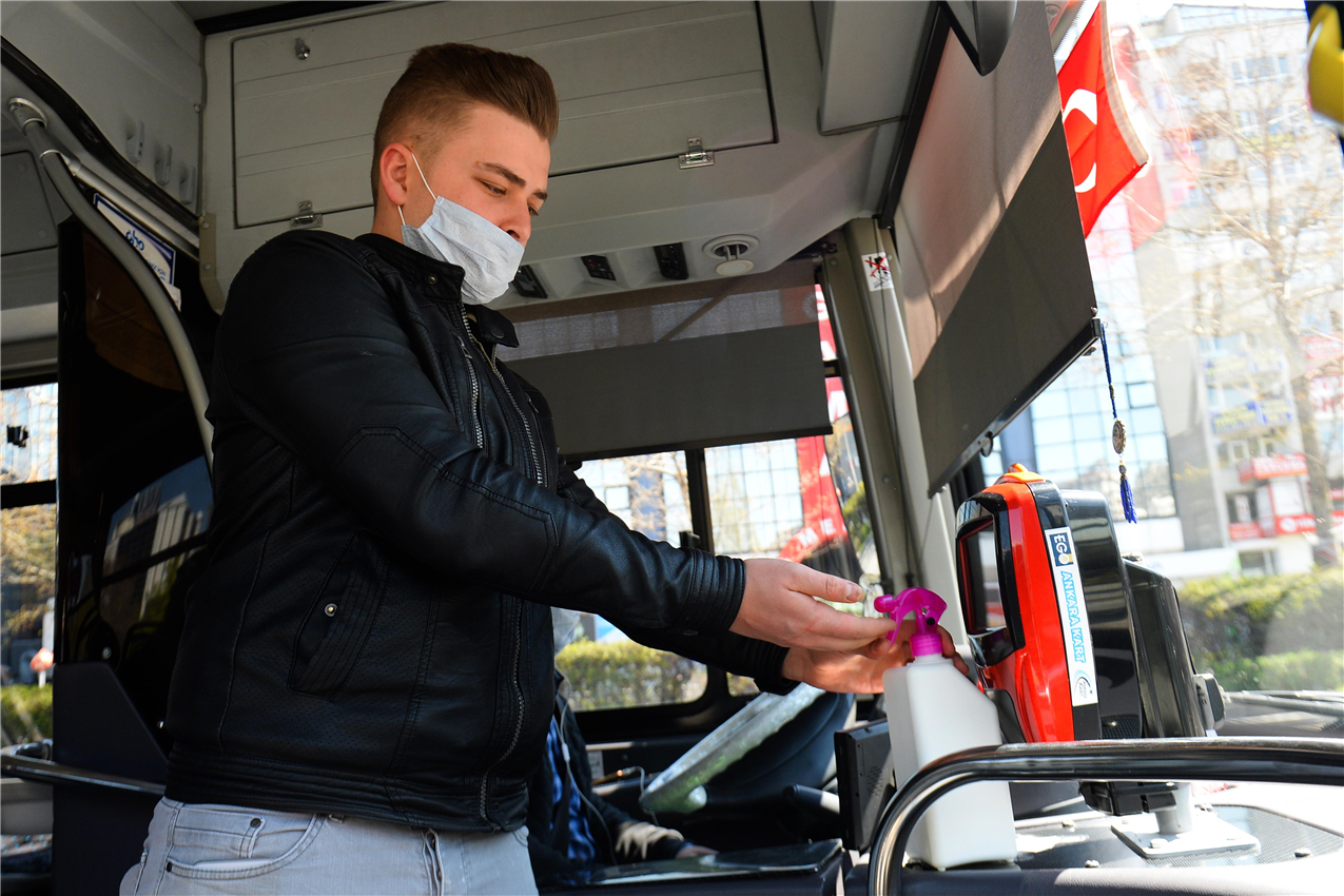 Başkent’te hizmet veren bin 470 EGO otobüsü başta olmak üzere 200 Özel Halk Otobüsü (ÖHO) ve 160 Özel Toplu Taşıma Aracına (ÖTA) dezenfektan ürün dağıtan EGO Genel Müdürlüğü, daha önce Metro ve ANKARAY istasyonlarına vatandaşların kullanması için el dezenfektanları yerleştirerek, maske dağıtımına da başlamıştı.