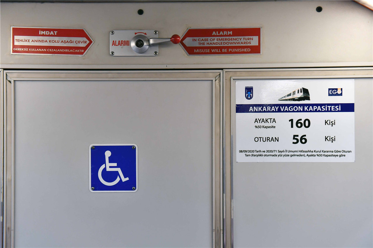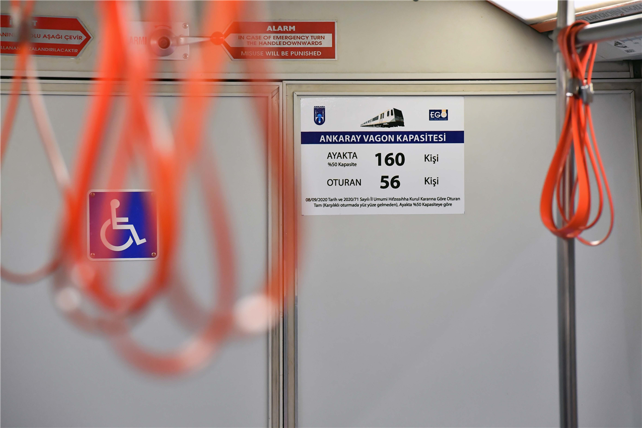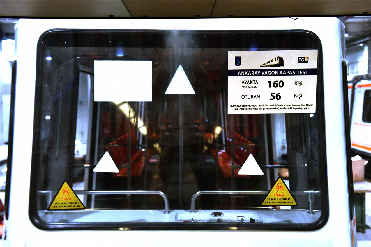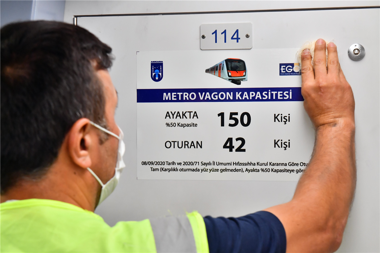 Ankara Büyükşehir Belediyesi, Covid-19 vakalarının artmasını önlemek amacıyla toplu taşıma araçlarında yolcu kapasitesinin yeniden düzenlenmesi üzerine ek önlemler alıyor. EGO Genel Müdürlüğü, Başkent’te hizmet veren EGO otobüsleri başta olmak üzere ANKARAY ve Metro vagonlarına yolcu taşıma kapasitelerine ilişkin bilgilendirme etiketleri yapıştırmaya başladı.