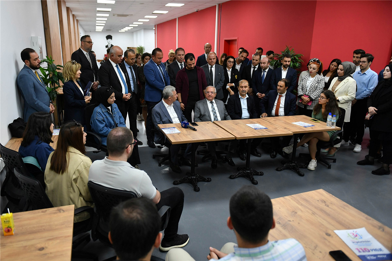 “ODTÜ Öğrenci Çalışma İstasyonu” adıyla hizmet vermeye başlayan merkezin açılışına katılan ABB Başkanı Mansur Yavaş’a gençler yoğun ilgi gösterdi.