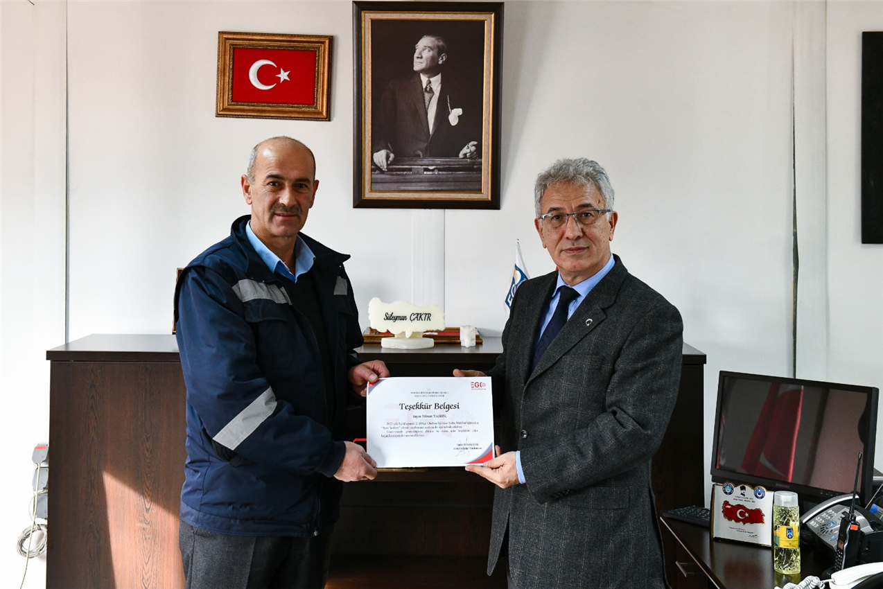 Zafer Tekbudak, “Ayın Şoförü” olarak seçilen sürücülerin, hangi kriterleri yerine getirmiş olduklarına ilişkin bilgileri paylaşmasının ardından, sürücü personeli kutlayarak teşekkür belgelerini takdim etti.