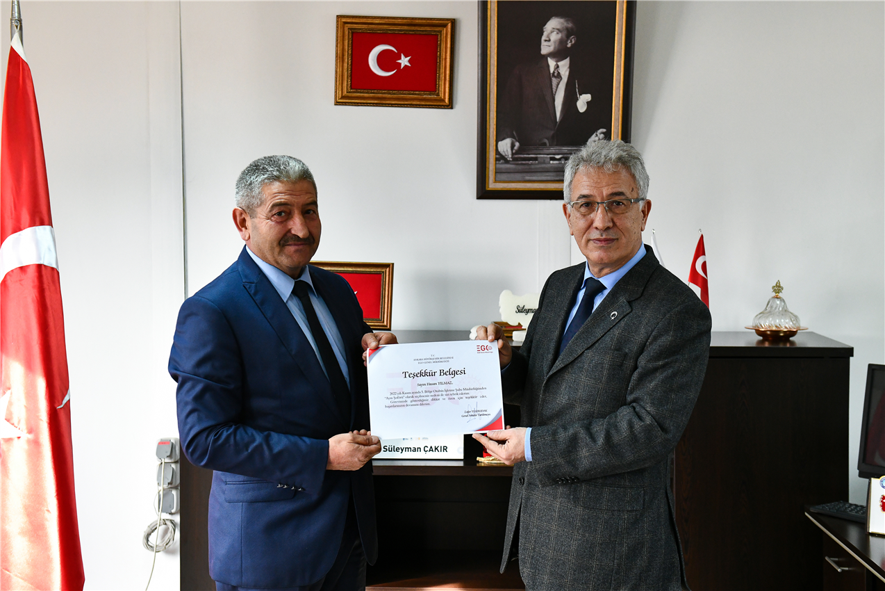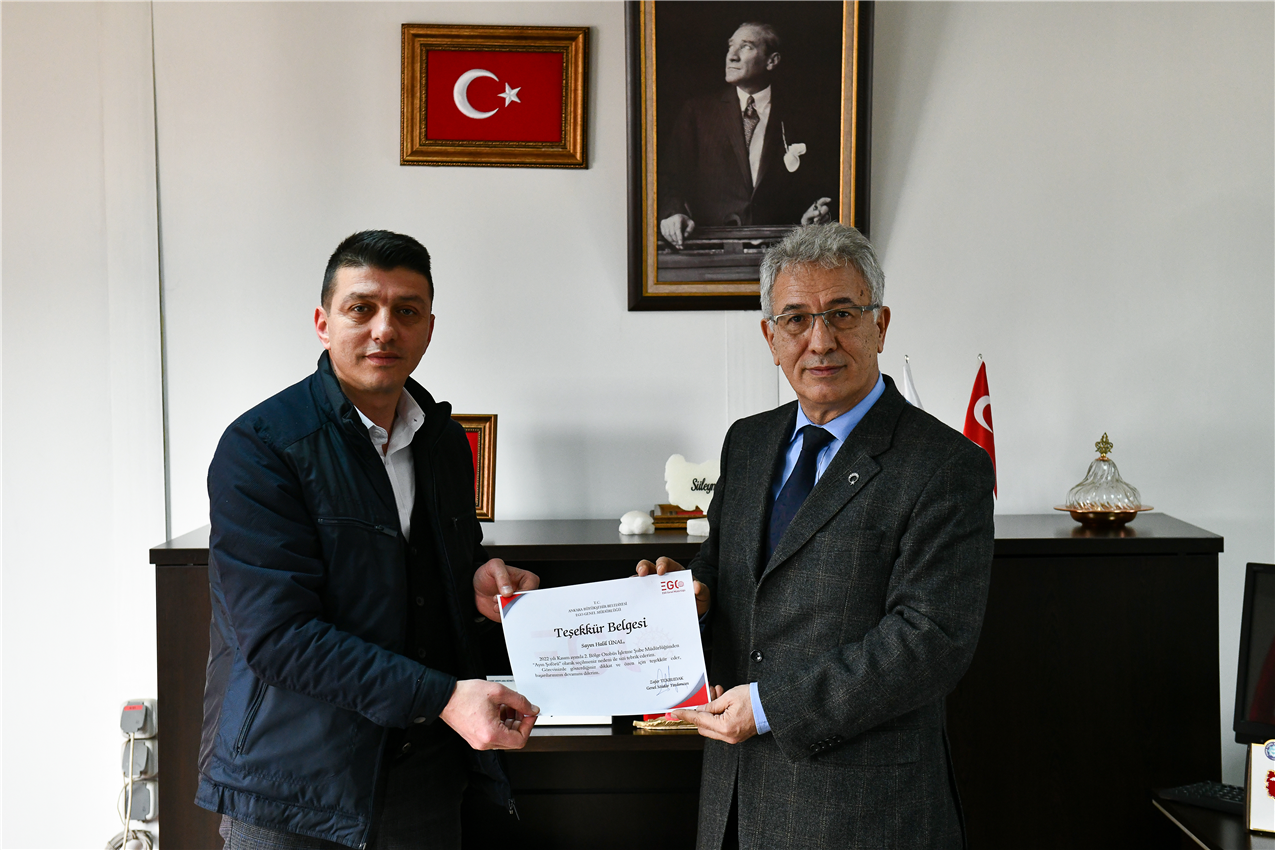 EGO Genel Müdür Yardımcısı Zafer Tekbudak, Hizmet İyileştirme ve Kurumsal Gelişim Dairesi Başkanı Ayten Gök ve Otobüs İşletme Dairesi Başkanı Yahya Şanlıer teşekkür belgelerini takdim etmek üzere “Ayın Şoförleri” ile 5. Bölge Otobüs İşletme Müdürlüğü’nde bir araya geldi.