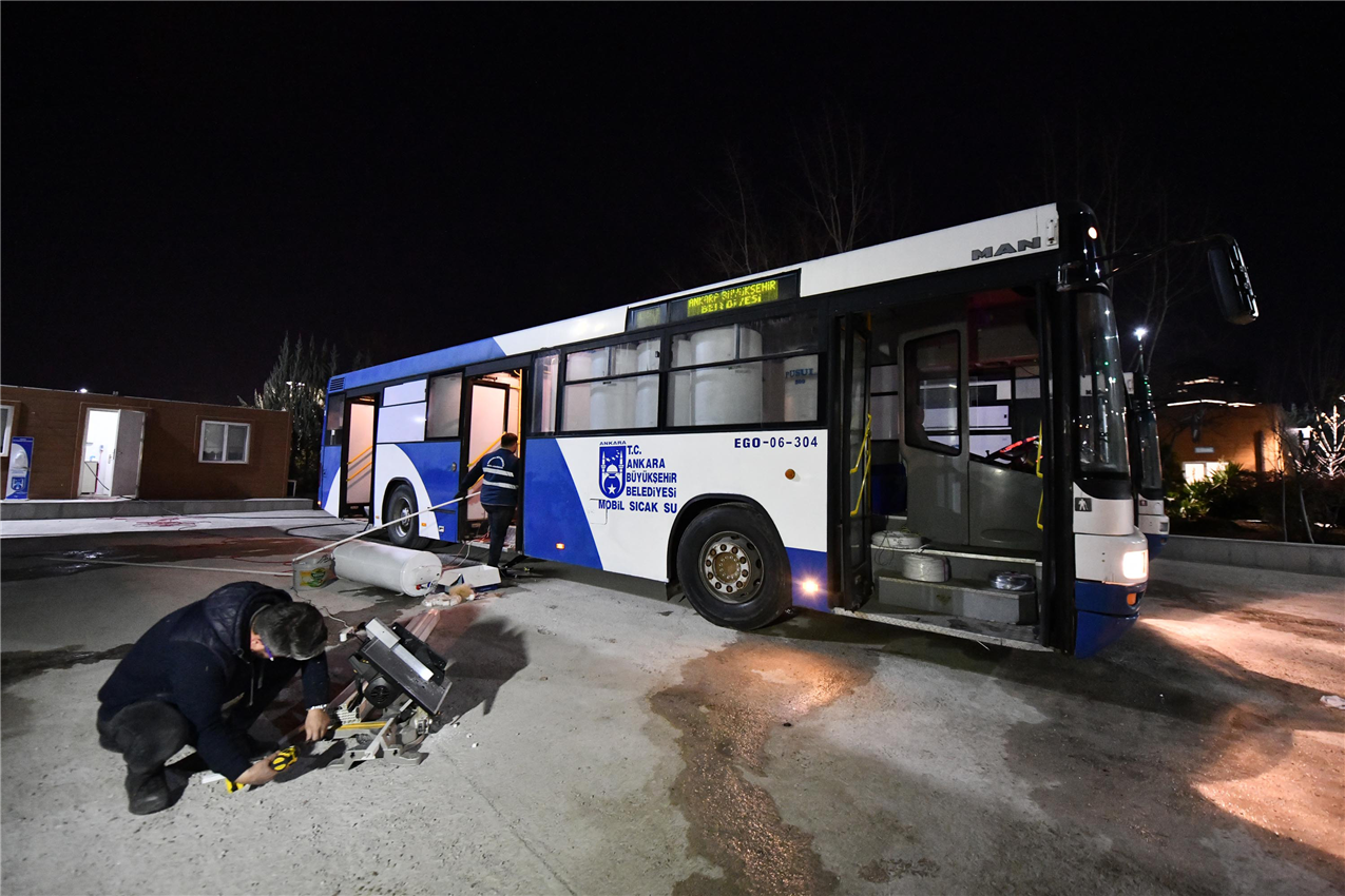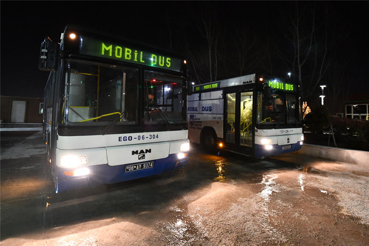 Çevre Koruma ve Kontrol Daire Başkanlığı ekipleri; EGO Genel Müdürlüğüne ait kullanım ömrünü tamamlamış 10 otobüsü, deprem bölgesindeki vatandaşların kullanması için mobil duş, mobil berber ve mobil çamaşırhaneye dönüştürdü.