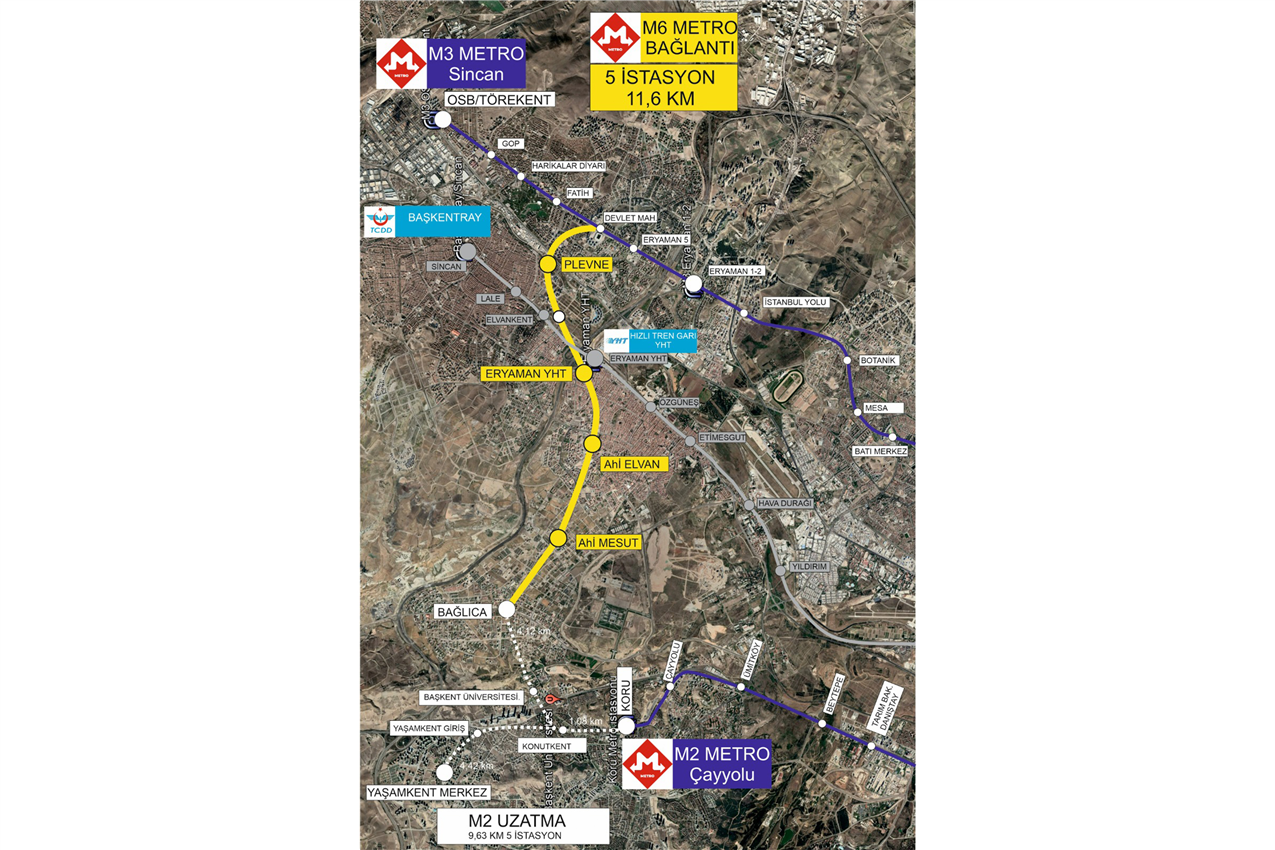 Proje çalışmasına başlanacak Çayyolu (M2)- Sincan (M3) Birleşim Hattı (M6) 10 kilometre uzunluğunda ve 5 istasyondan oluşuyor. Bu hat ile Çayyolu- Sincan hatları arasındaki geçiş süresi kısalacağı gibi Başkentray ve YHT hatlarıyla da entegrasyonu sağlanacak.