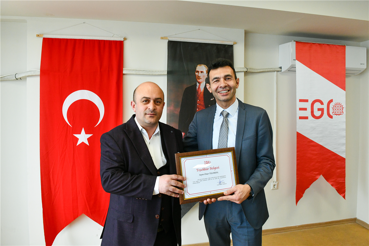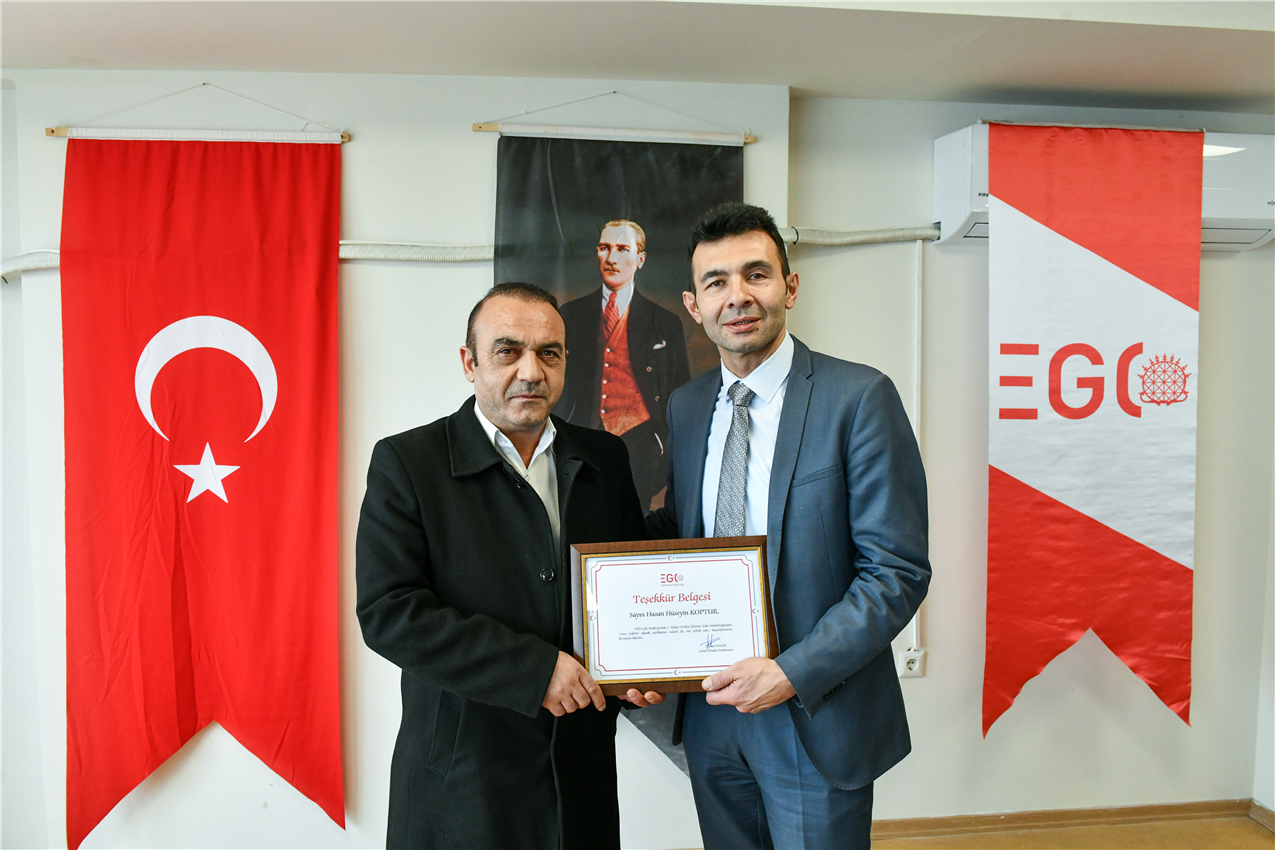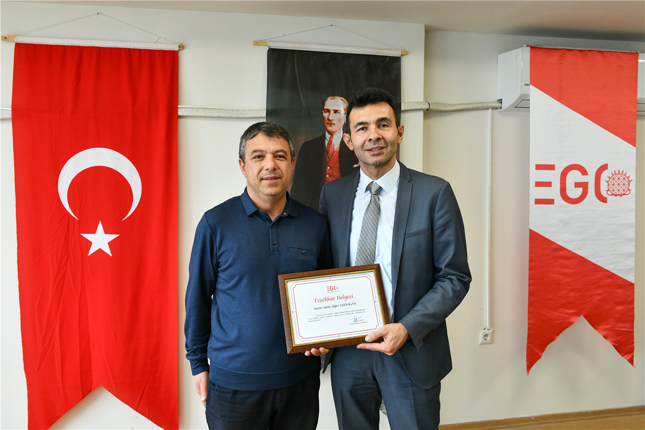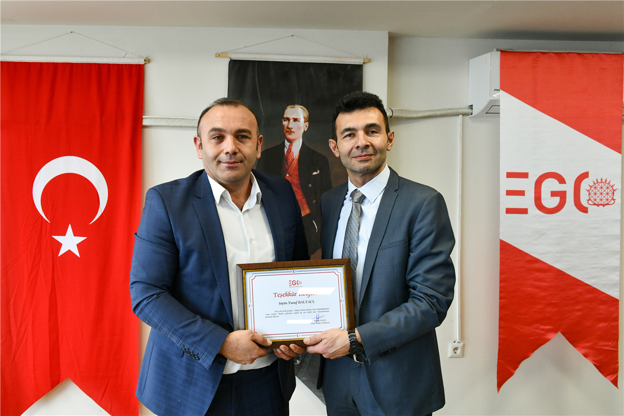 EGO Genel Müdür Yardımcısı Dr. Taylan Engin, Otobüs İşletme Dairesi Başkanı Yahya Şanlıer ve Hizmet İyileştirme ve Kurumsal Gelişim Dairesi Başkanı Ayten Gök ile birlikte, 3. Bölge Otobüs İşletme Şube Müdürlüğü’nde ödül alan şoförlerle bir araya geldi.