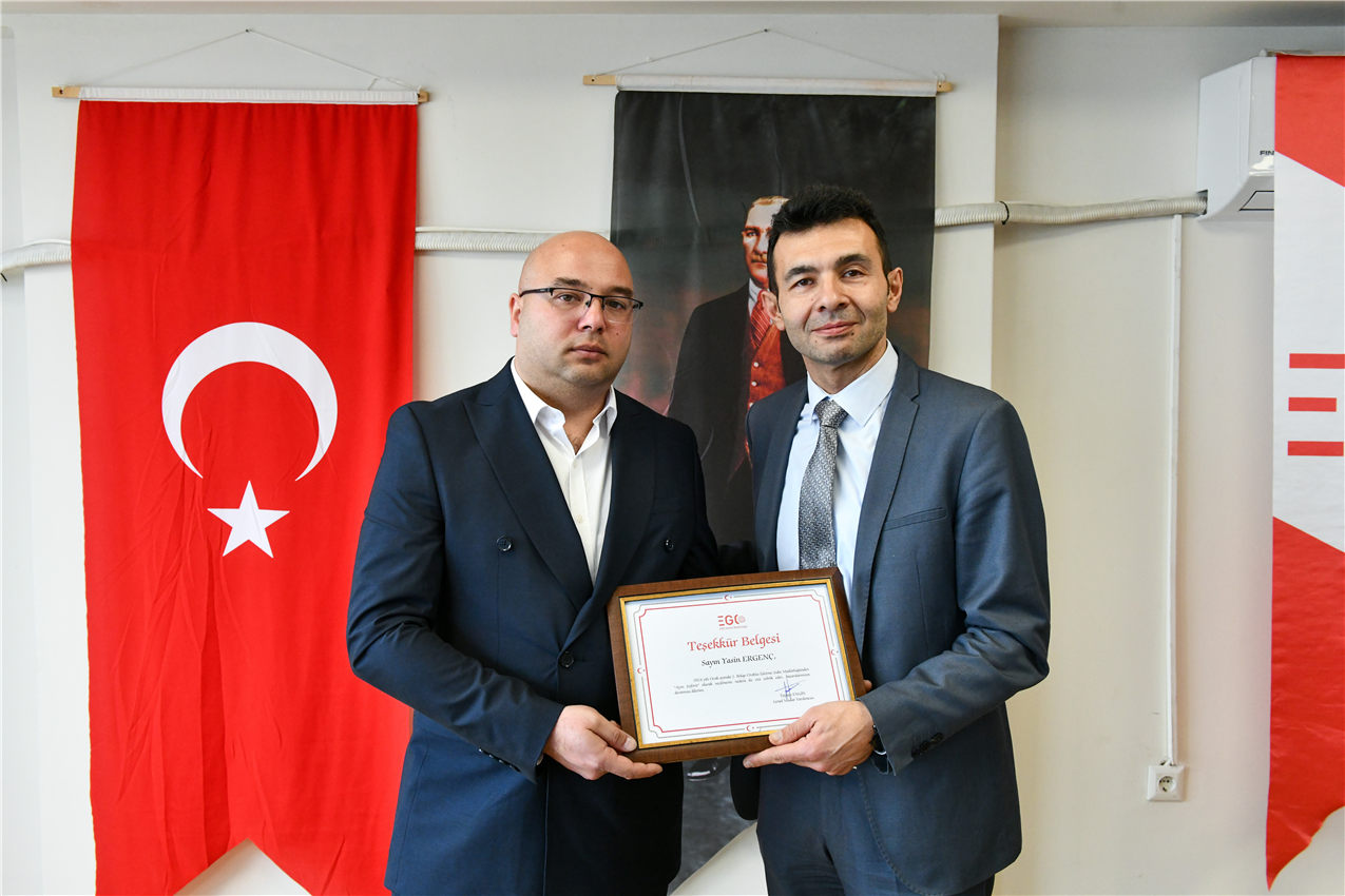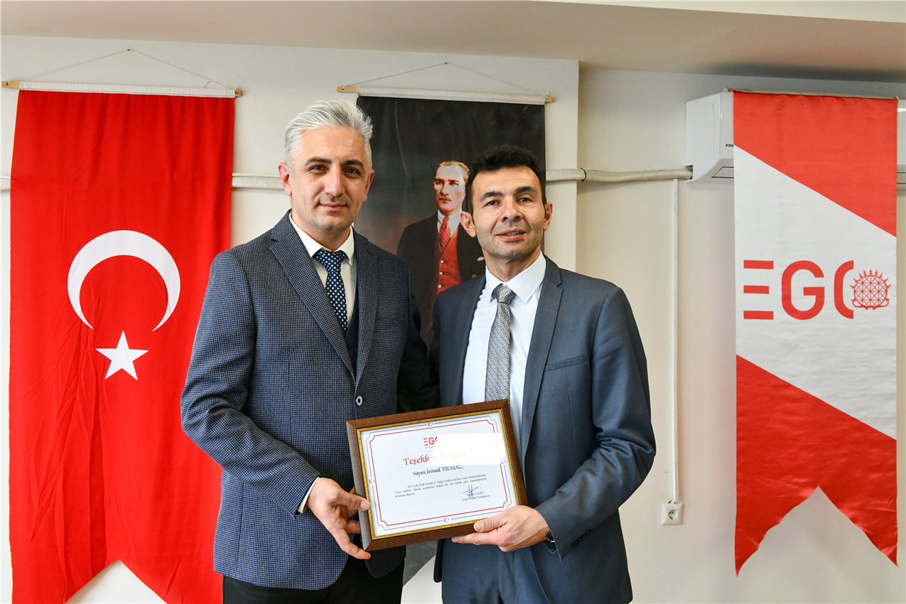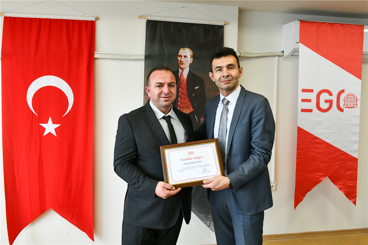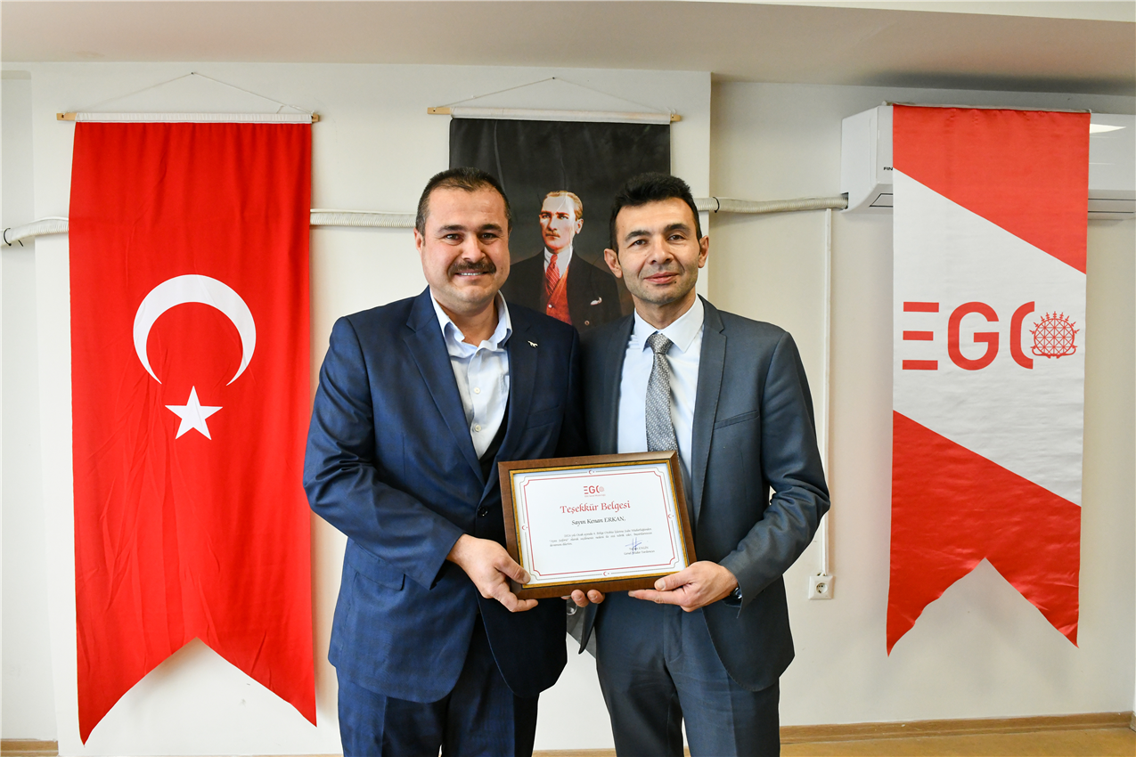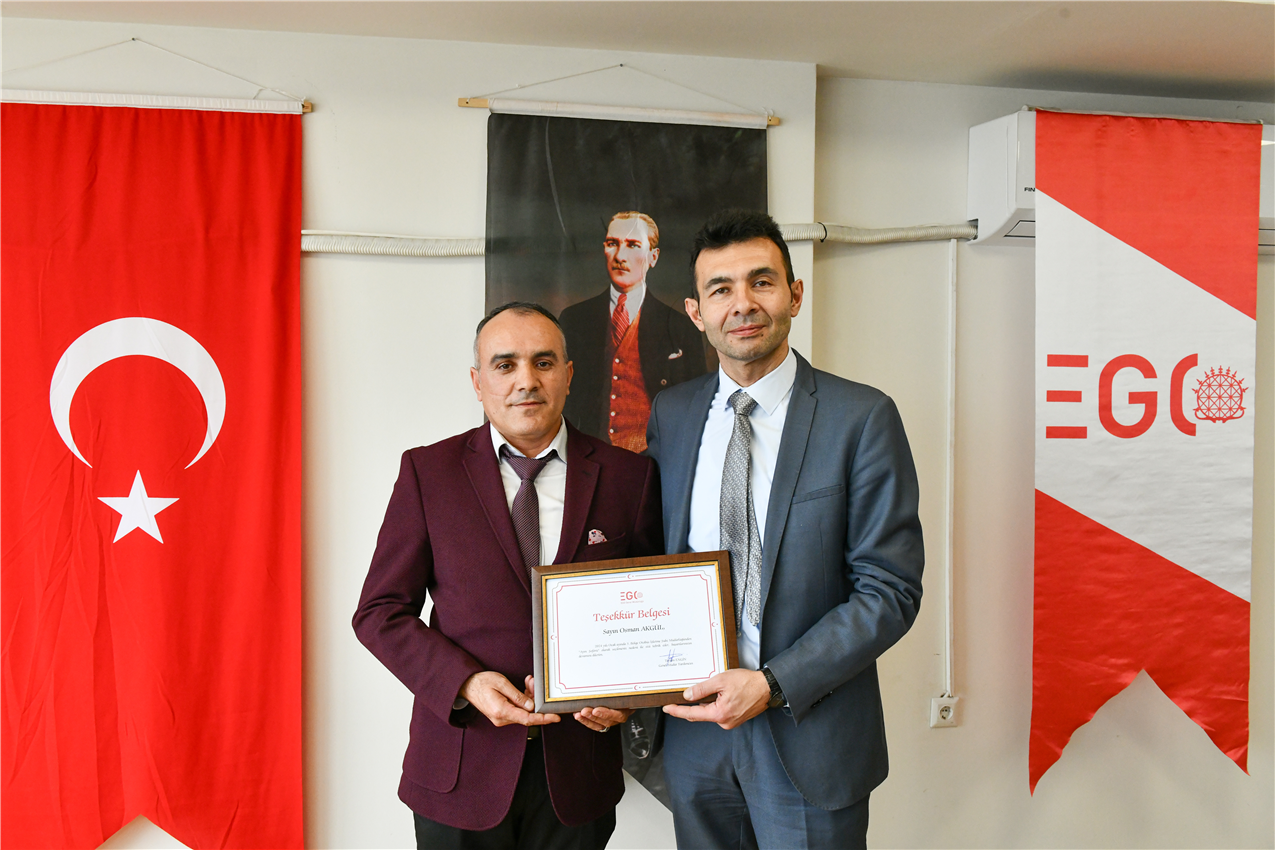 EGO Genel Müdür Yardımcısı Dr. Taylan Engin, Otobüs İşletme Dairesi Başkanı Yahya Şanlıer ve Hizmet İyileştirme ve Kurumsal Gelişim Dairesi Başkanı Ayten Gök ile birlikte, 3. Bölge Otobüs İşletme Şube Müdürlüğü’nde ödül alan şoförlerle bir araya geldi.