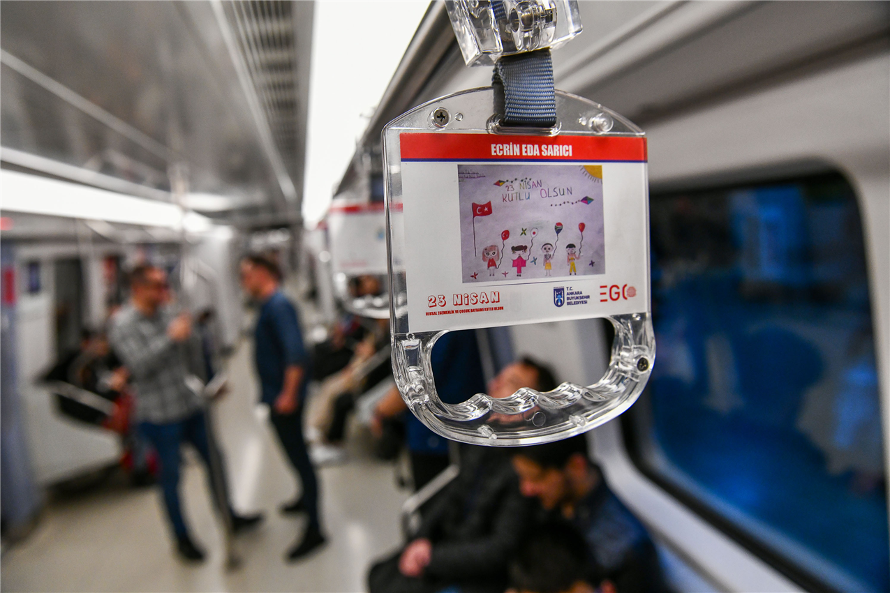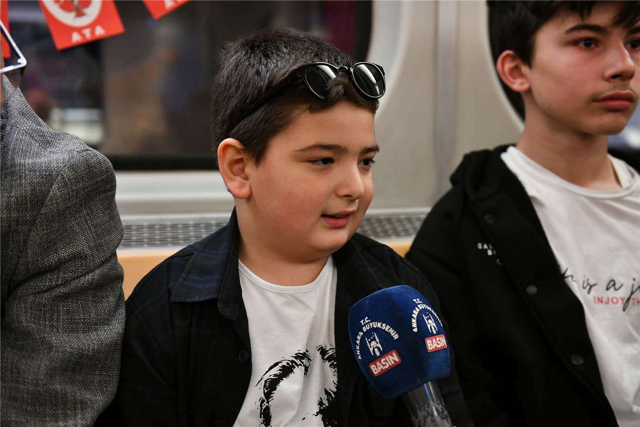 EGO Genel Müdür Yardımcısı Zafer Tekbudak, “23 Nisan Ulusal Egemenlik ve Çocuk Bayramı ülkemizin dört bir yanında coşkuyla kutlanan önemli bir bayramdır. Başkentte yaşayan çocuklarımız için etkinlik planladık onların sevinç ve coşkusuna ortak olmak istedik. 1997 yılında hizmete açılan ve Ankara Metrosunda kullanılan bombardier metro vagonları Türkiye’nin ilk metro olma özelliği taşıyor. 2018 yılında servisten kaldırıldı ve 2021 yılında trenlerin dışını grafiti, iç kısmını da Türk bayrakları ve balonlarla süsledik. Buda büyük bir ilgi gördü. Bugün Kent Orkestrasının seslendireceği mini konser ile güzel bir yolculuk yaptık. Yolcuğumuz Macunköy Metro İşletme Müdürlüğünden başlayarak Koru metro İstasyonu ve Sincan Organize Sanayi Bölgesi yönünü dolaşarak yolcularla birlikte bir tur yaptık. Çocukların 23 Nisan ile ilgili yaptıkları resimlerde trenlerimizde sergileniyor. Diğer trenlerimizin tutamaçlarında da resimler yer alıyor” dedi.
