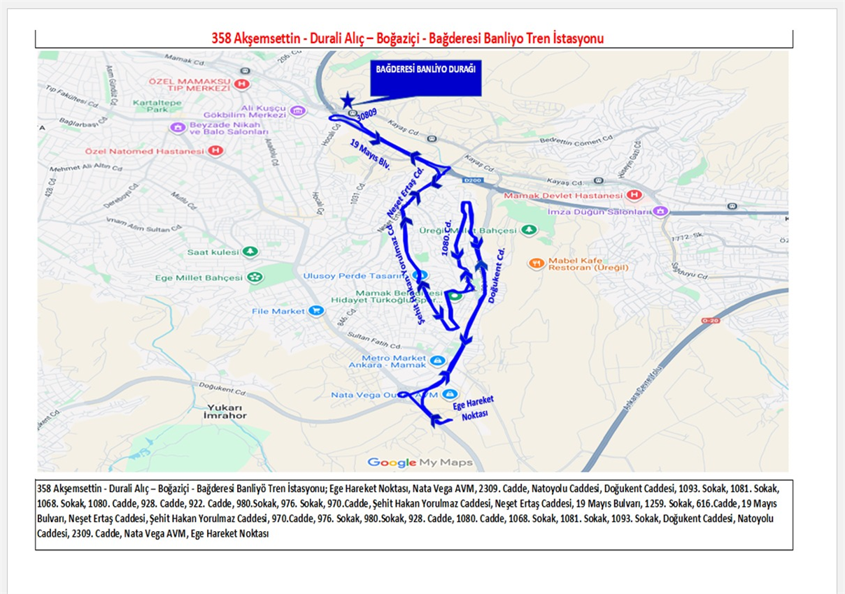 • 358 Akşemsettin – Durali Aliç – Boğaziçi – Bağderesi Banliyö Tren İstasyonu