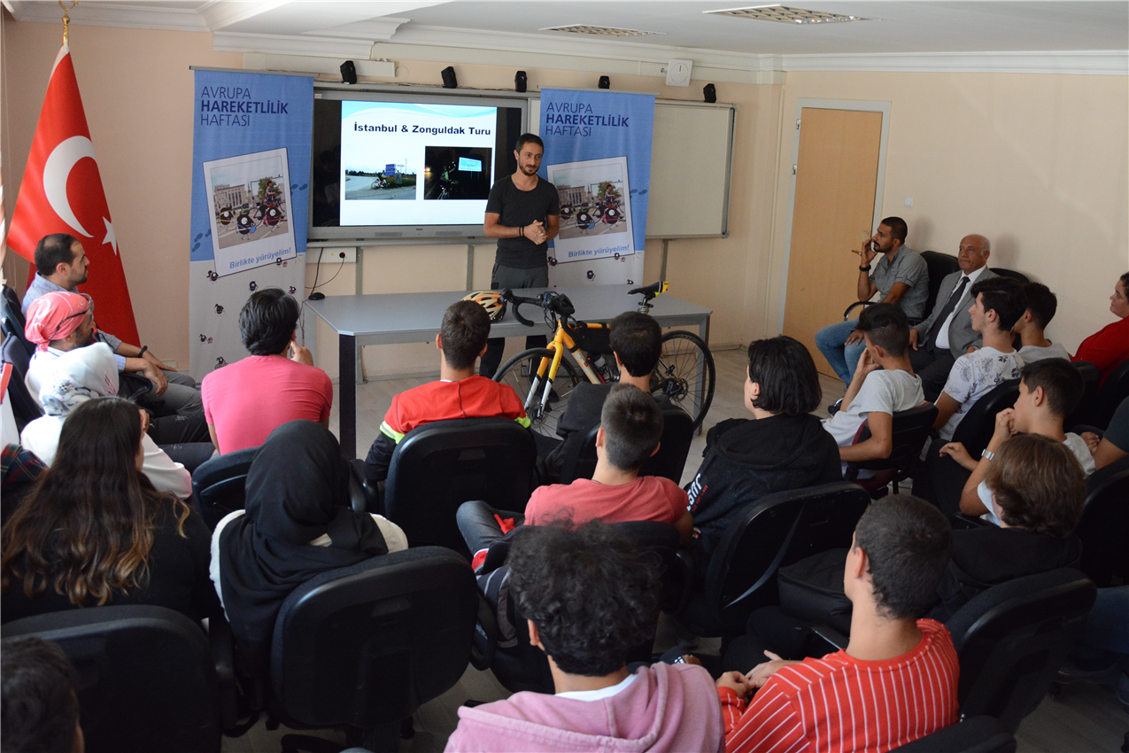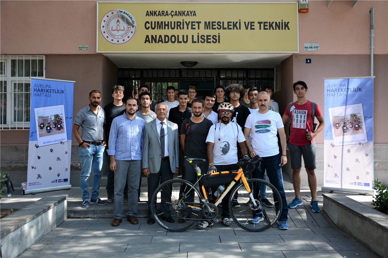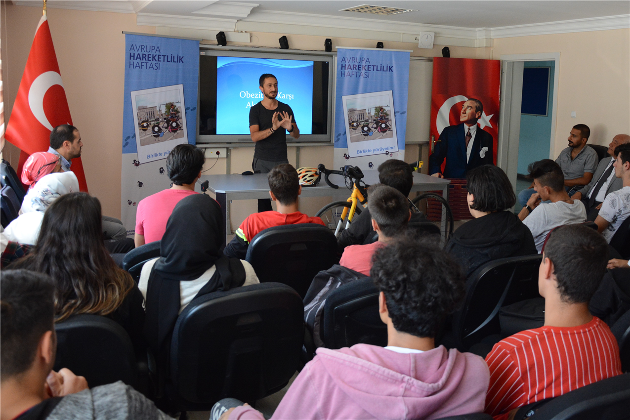Halk sağlığını ve yaşam kalitesini iyileştirmeyi, hareketlilik ve kentsel yaşam alanını etkilemeyi ve geliştirmeyi amaçlayan Avrupa Hareketlilik Haftası kapsamında bugün Çankaya Cumhuriyet Mesleki Teknik ve Anadolu Lisesi’nde Bisiklet Hareketi Derneği’nden aktif yaşam koçu Melih Şentürk tarafından öğrencilere “Obeziteye Karşı Aktif Yaşam” konulu bilgilendirme çalışması yapıldı.
