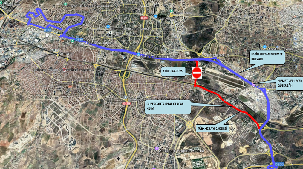 Durum üzerine ilgili cadde üzerinden hizmet sağlayan 21 farklı EGO hattımızın güzergâhında revize çalışması yapılması zorunlu hale gelmiştir.