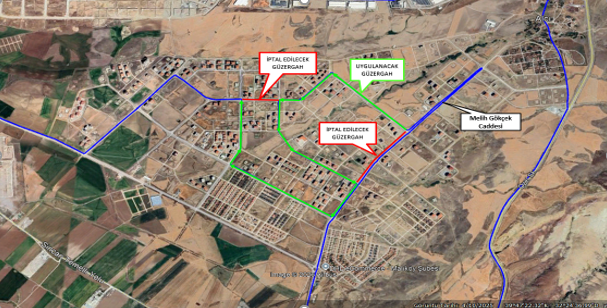 Vatandaşlarımızdan gelen talepler neticesinde, 581 Koru Metro İstasyonu-Organize Sanayi Bölgesi hattımızın güzergâhında 21.04.2026 Salı tarihi itibariyle başlanmak üzere krokide belirtilen şekilde güzergâh değişikliği yapılacaktır.