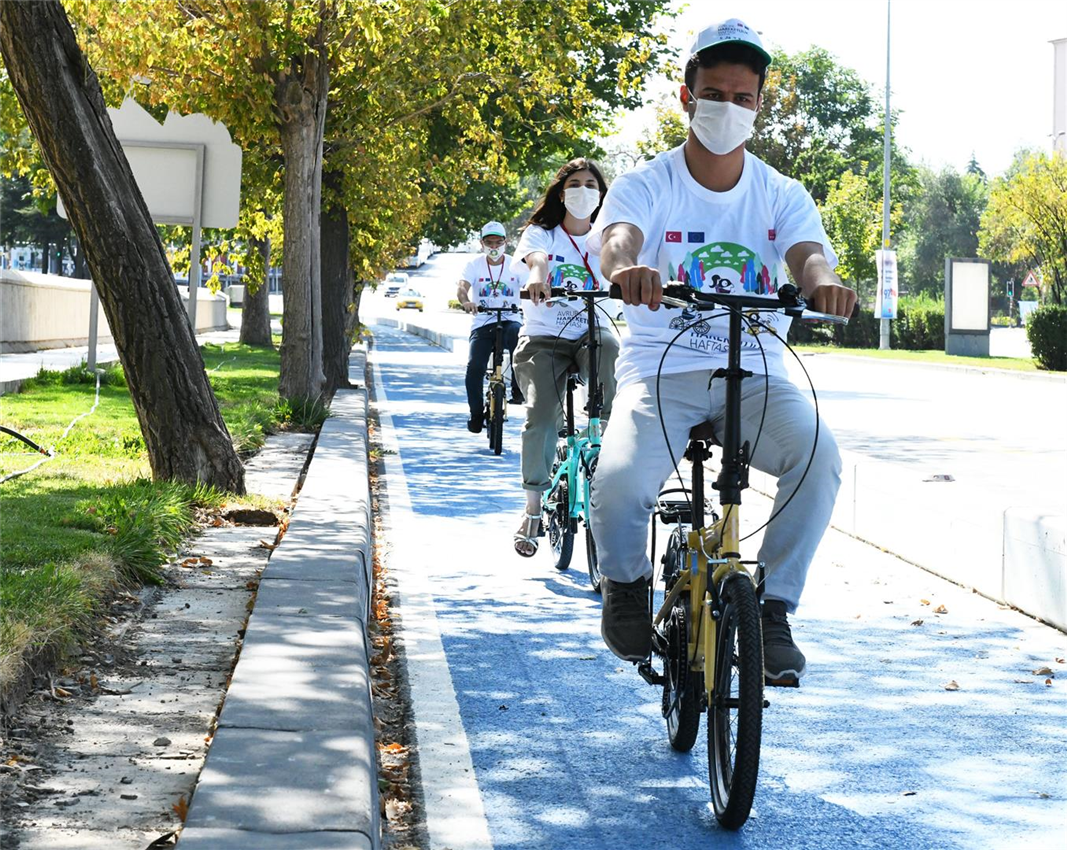 Tüm dünyada olduğu gibi Türkiye’de de 16-22 Eylül tarihlerinde eş zamanlı kutlanacak olan “Avrupa Hareketlilik Haftası” öncesinde, Türkiye Belediyeler Birliği’nin davetlisi olarak Başkent’e gelen üniversite öğrencileri, sosyal ve kültürel faaliyetler kapsamında Ankara Büyükşehir Belediyesi’nin Anıtpark-Beşevler etabındaki Bisiklet Yolu’nda pedal çevirdi.