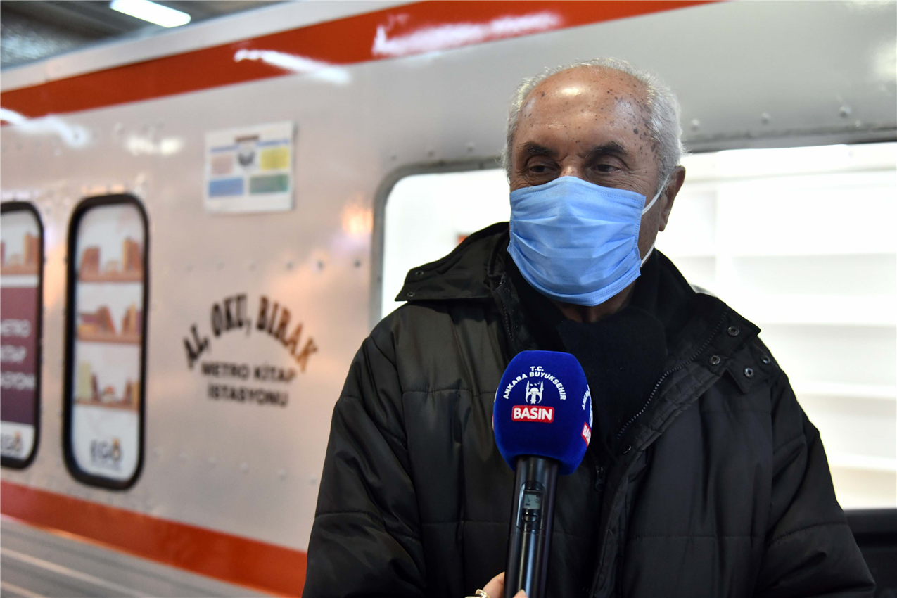 “Maalesef ülkemizde kitap okuma oranı oldukça düşük. Bu projeye başlarken hedefimiz vatandaşlarımızı okumaya teşvik etmekti. En azından metro seyahatlerinde kitap okuyabilme imkanı sunmaktı. Vatandaşlarımızın hemen ulaşabileceği, sanki evindeki kütüphanesinden alıyormuş gibi rahatça ulaşabileceği bir ortam sağlamak istedik. Yer olarak da insan hareketliliğinin en yoğun olduğu ve merkezi bir konumda bulunan Kızılay Metro İstasyonunuzu seçtik. Bu lokasyonda ayrıca yer altından giden ilk hafif raylı sistem hattı olan ANKARAY geçiş alanı da bulunuyor. Kitap İstasyonu olarak kullanılan bu vagon, 2010 yılında Ankara Festivali için yapılan Bombardier treninin maketidir. Bu maketi kütüphane şeklinde düzenledik. Bu projeyle, Ankara halkına ücretsiz ve kolay ulaşılabilir küçük bir kütüphane hizmeti sunulmuş olacak. Büyükşehir Belediyemizin yayınları da bu sayede vatandaşlarımıza daha kolay ulaştırılacak.”