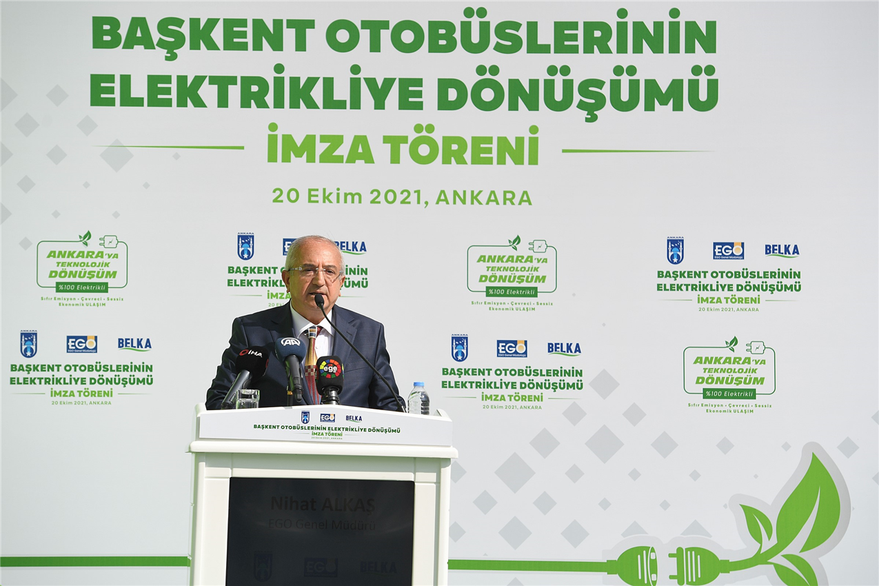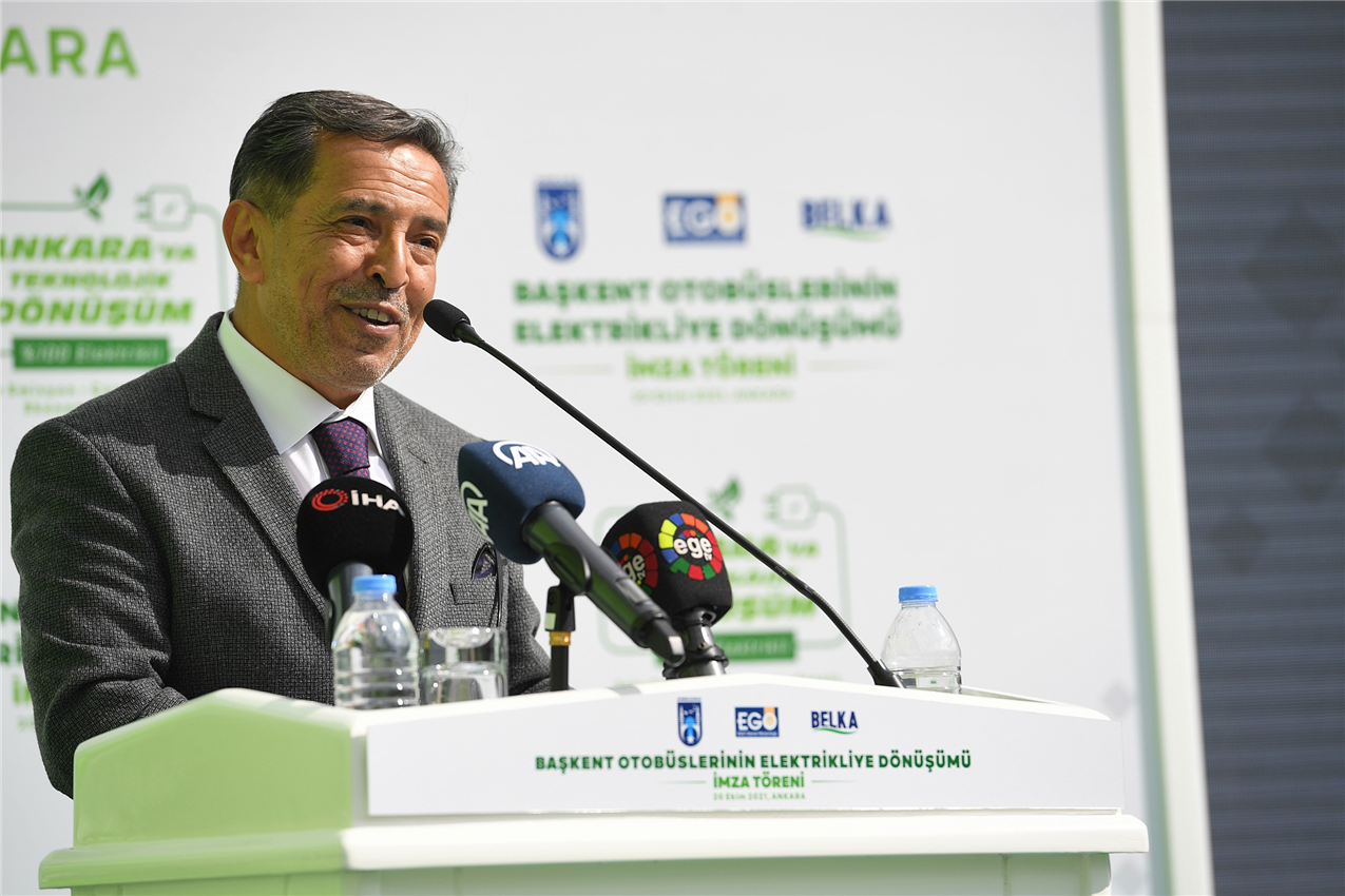“Dünya ulaşım sektörü son yıllarda hızlı bir gelişim ve dönüşüm geçirmektedir. Dizel ve benzinli araçların yoğunlukta olduğu bu sektörde, karbon salınımı ve emisyon oranlarındaki artışa bağlı olarak yaşanan iklim değişikliği sonucunda artan çevresel duyarlılıkların da etkisiyle tüm dünyada doğalgazlı ve elektrikli araç kullanımı yaygınlaşmaktadır. EGO Genel Müdürlüğü olarak, dünyadaki bu çevreci yaklaşıma paralel olarak toplu taşıma hizmetlerinde kullanılmak üzere, düşük emisyon değerleri ile doğayı koruyan Euro 6 motor teknolojisine sahip 51 adet 8.3 metrelik otobüsün filomuza kazandırılmasından sonra, Avrupa İmar ve Kalkınma Bankası kredisiyle temin ettiğimiz %90‘ı doğalgazlı olan 301 otobüsümüzü de önümüzdeki aydan itibaren peyderpey filomuza dahil edeceğiz. Belediyemiz iştiraki olan BELKA A.Ş. tarafından 2006 model dizel otobüslerden 22 adedi, %100 elektrikli otobüse dönüştürülerek filomuza dahil edilecek. İlerleyen süreçte alımı gerçekleştirilecek, yeni elektrikli otobüslerle filomuzun daha da çevreci hale gelmesi hedeflenmektedir.”
