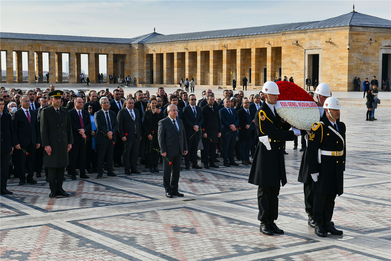 EGO Genel Müdürü Nihat Alkaş, Genel Müdür Yardımcıları, Daire Başkanları ile çalışanlar, EGO’nun “80. Kuruluş Yıl Dönümü”nde Anıtkabir’i ziyaret etti.