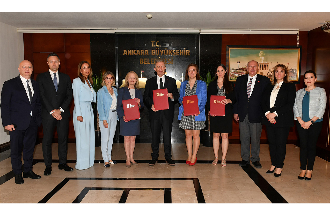 Başkanlık makamında gerçekleşen buluşmada kredi sözleşmesini; Ankara Büyükşehir Belediye Başkanı Mansur Yavaş, EBRD Altyapı Sektörü Türkiye-Orta Doğu ve Afrika Bölge Direktörü Sue Barrett ile AFD Fransa Cumhuriyeti Ankara Büyükelçiliği Elçi Müsteşarı Mathilde Grammont imzaladı.