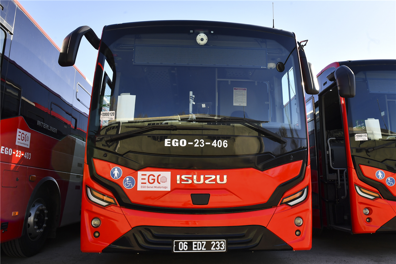 Yolcuların konforlu ve ekonomik bir şekilde seyahat etmelerini sağlamak amacıyla yolcu yük bagajı bulunan otobüsleri aldıklarını söyleyen EGO Genel Müdür Yardımcısı Zafer Tekbudak, “EGO Genel Müdürlüğü olarak, 5 Nisan 2023 tarihi itibarıyla, 442 AŞTİ-15 Temmuz Kızılay Milli İrade Meydanı-Havalimanı hattında, 2021-2022 model kırmızı renkli Mercedes Benz marka yeni araçlarımızla hizmet vermeye başladık. Vatandaşlarımızın engelli erişimine uygun, yolcu yük bagajı ve rafı bulunan ve yüksek yolcu kapasitesine sahip turizm tipi otobüslere daha konforlu bir şekilde bu hizmetten istifade etmelerinin sağlanması amacıyla 28 Nisan 2023 tarihinde Devlet Malzeme Ofisi üzerinden 15 adet ISUZU Interliner marka araç alımı gerçekleştirildi. 15 aracın 9’unun plaka tescil ve validatör işlemleri tamamlandı. Vatandaşlarımız hem ekonomik bir tarife hem de konforlu bir ulaşım imkânına kavuşmuş olacak. Yeni araçlarımızın hayırlı olmasını diliyorum” diye konuştu.