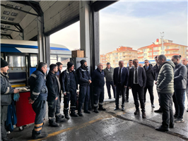 Bölge ziyaretleri kapsamında 5.Bölge Otobüs İşletmesi Şube Müdürlüğü Araç Sevk Amirliği, Baş Şoförlük ve Araç Bakım Onarım Dairesi Başkanlığı Bakım Onarım birimlerinde görevli personelle görüşme sağlanmış olup, araçların bakım - onarımından hizmete hazır hale getirilmesi ve servislere yönlendirilmesi sürecindeki iş ve işlemler incelenerek bu süreçlerin daha etkin ve kaliteli bir şekilde sürdürülebilmesine yönelik teknik ve idari personelle istişarede bulunulmuştur.